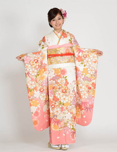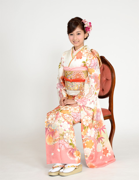 振袖の柄を見せるポーズ