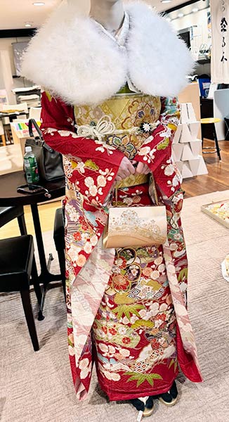 すごく熱心に振袖選びをサポートしてくださり、娘の要望に合わせてさまざまな種類を丁寧に試させていただきました。一つひとつ真剣に向き合ってくださる姿がとても印象的でした。すべて決め終えて振袖を着た娘の姿を見たときは、本当に感動しました。私は外国人ですが、着物の柄に込められた意味や細かなポイントまで分かりやすく説明してくださり、とても親切で安心して任せることができました。大変感謝しています。