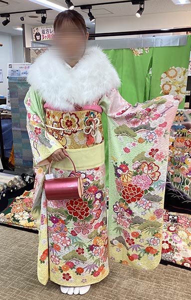 購入もレンタルの物を合わせて常に300〜400枚ほどの振袖が置いてあります。